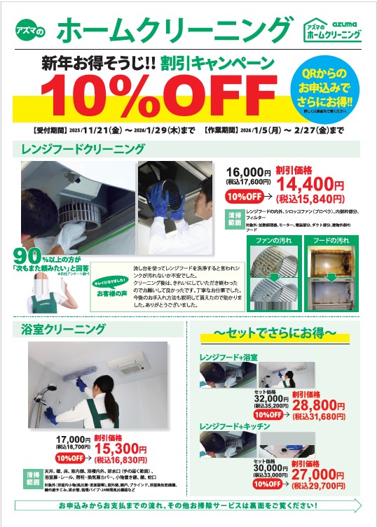 年1回まとめて「おそうじ」この機会をお見逃しなく!