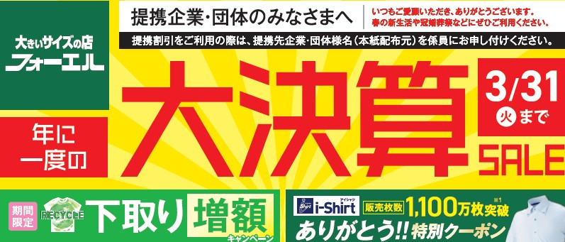 3月末まで!「P.S.FA」の春得フェアと「フォーエル」の大決算セール お見逃しなく!
